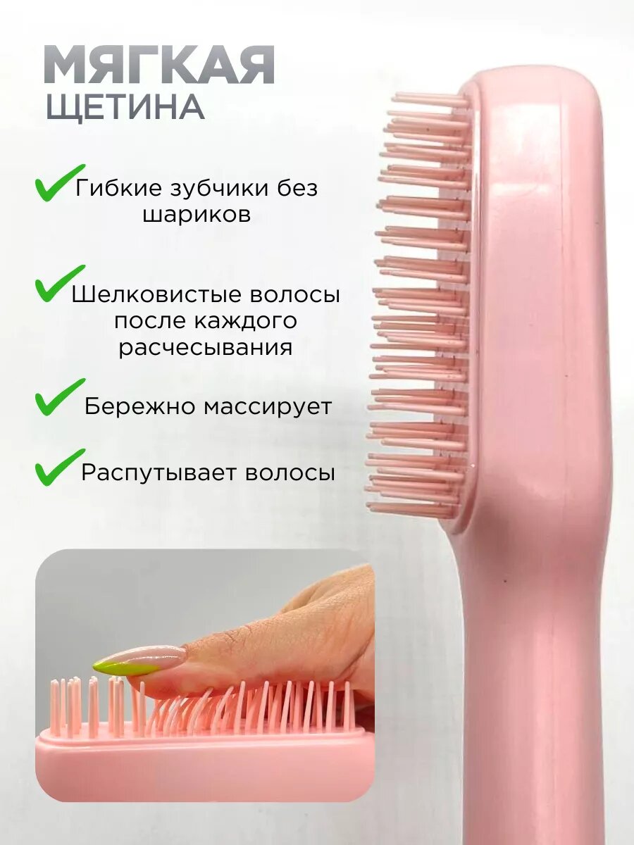 Самоочищающаяся массажная расческа для волос, розовая, компактная, интересное: