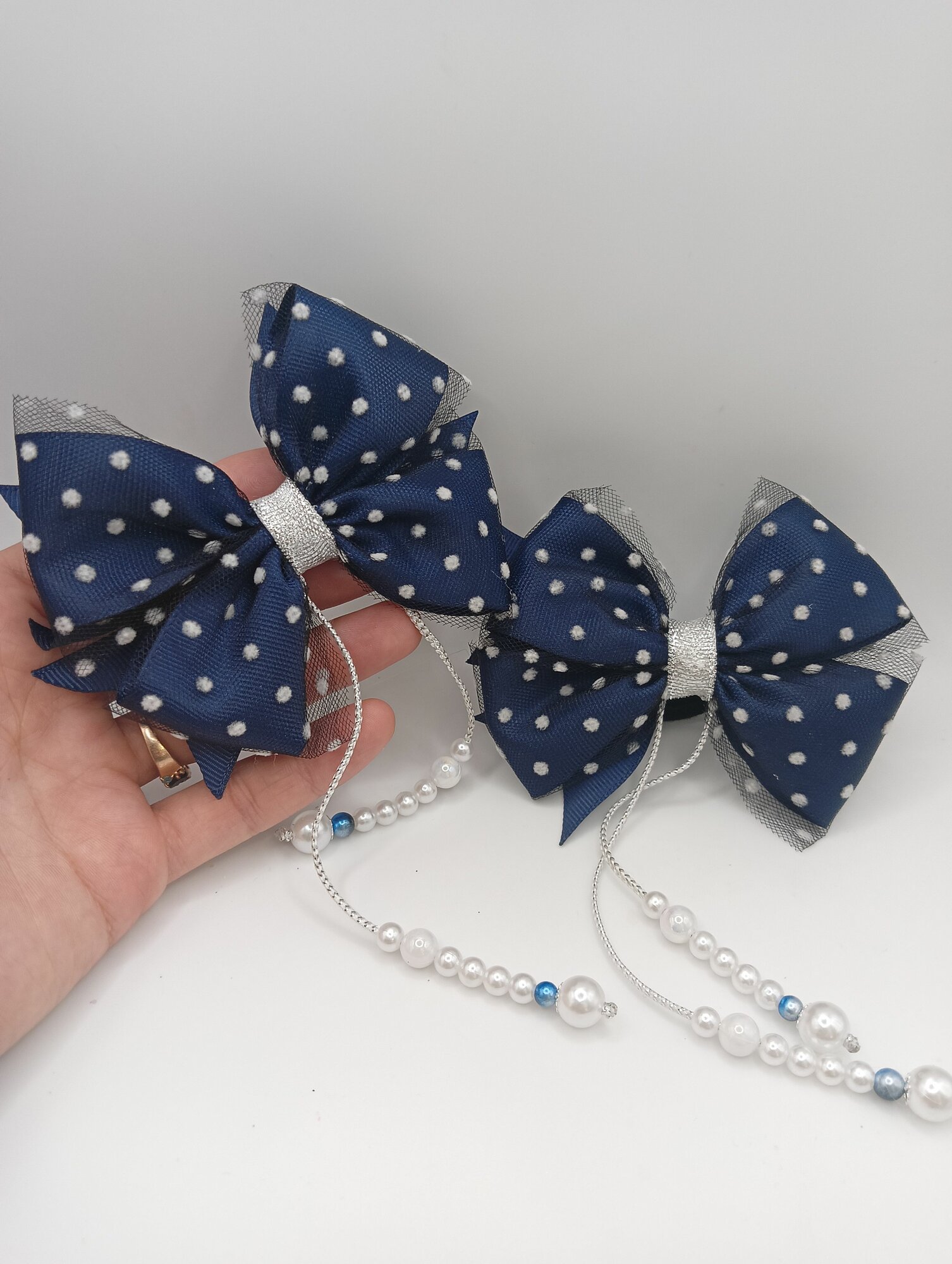 Бантики школьные горох,с подвесками. синие резинки банты интересное: