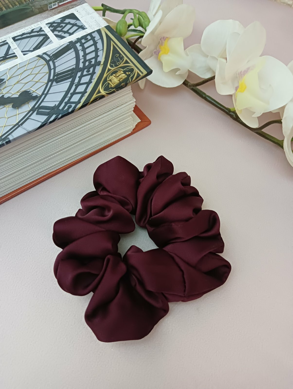 Резинка для волос из шелка Армани. Бардовый. средняя, высокой упругости.
