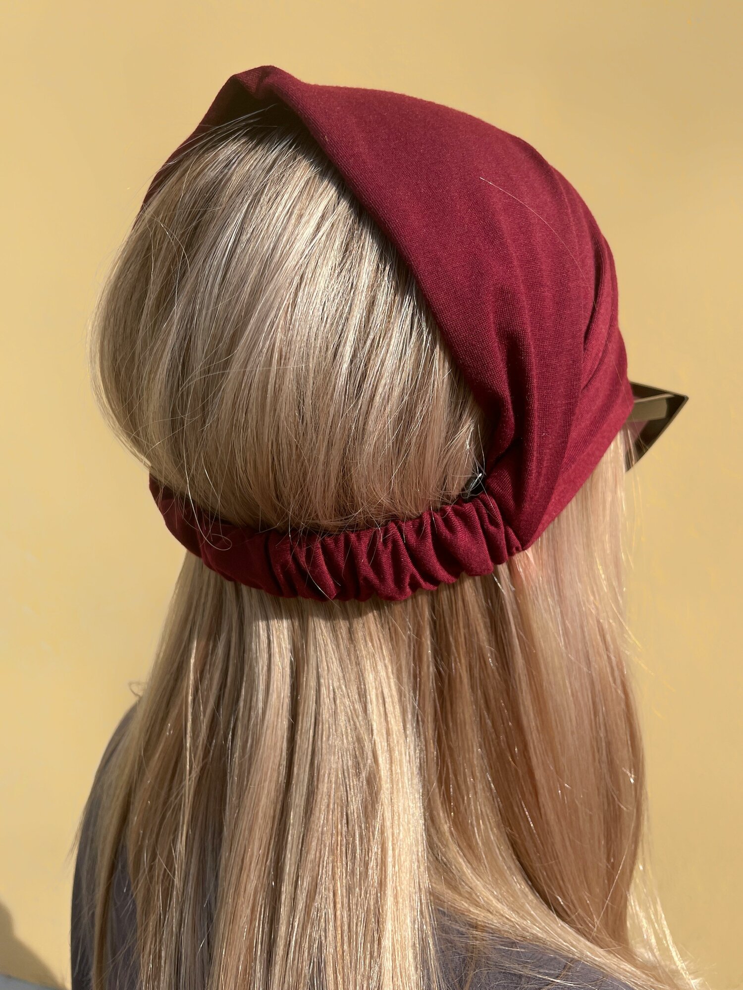 Повязка бандана косынка на голову хлопковая однотонная эластичная бордовая на резинке интересное: