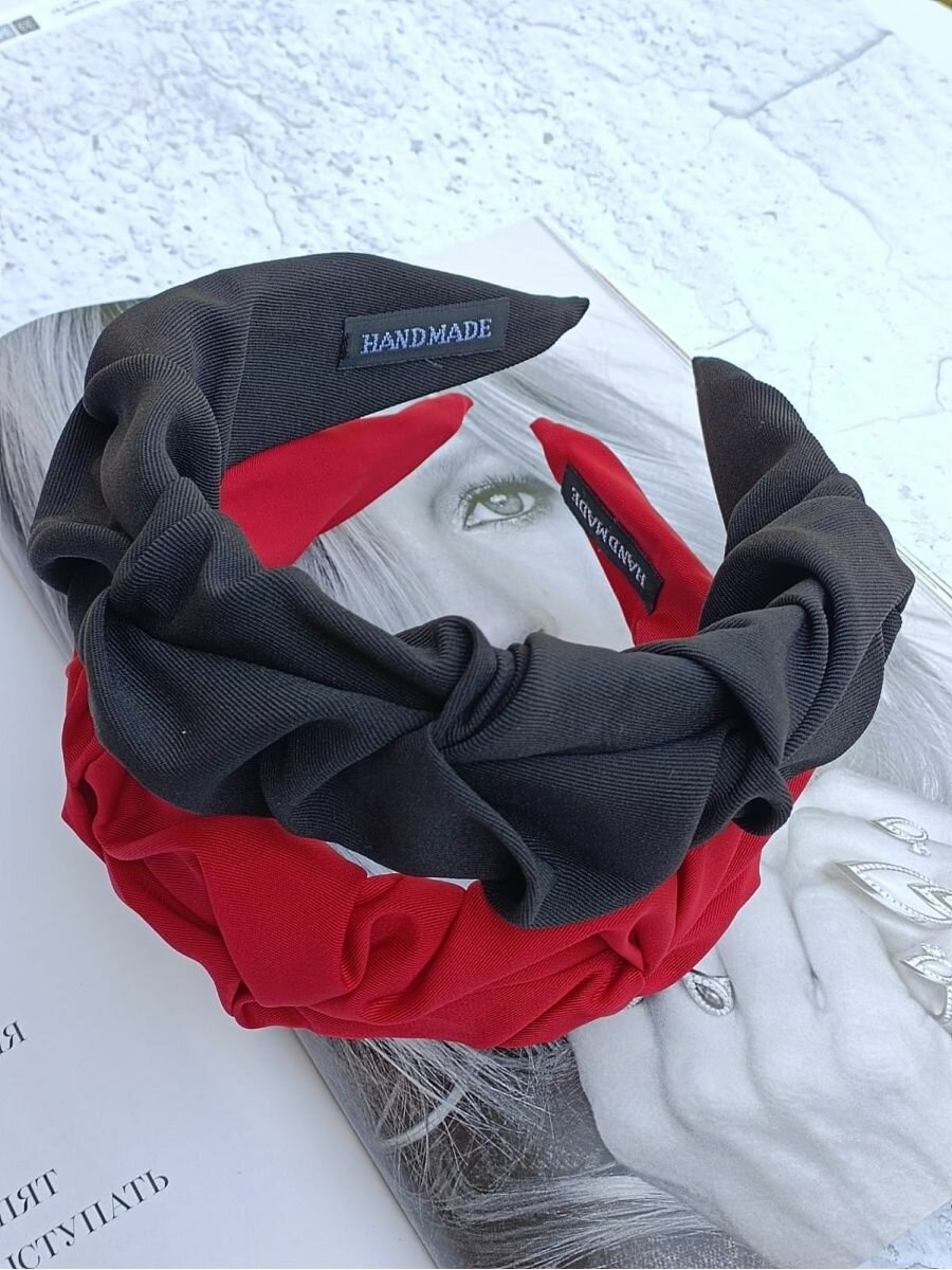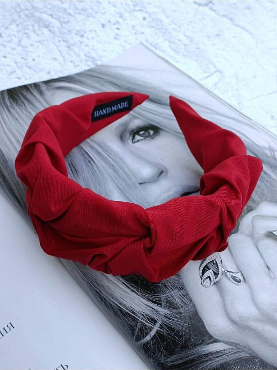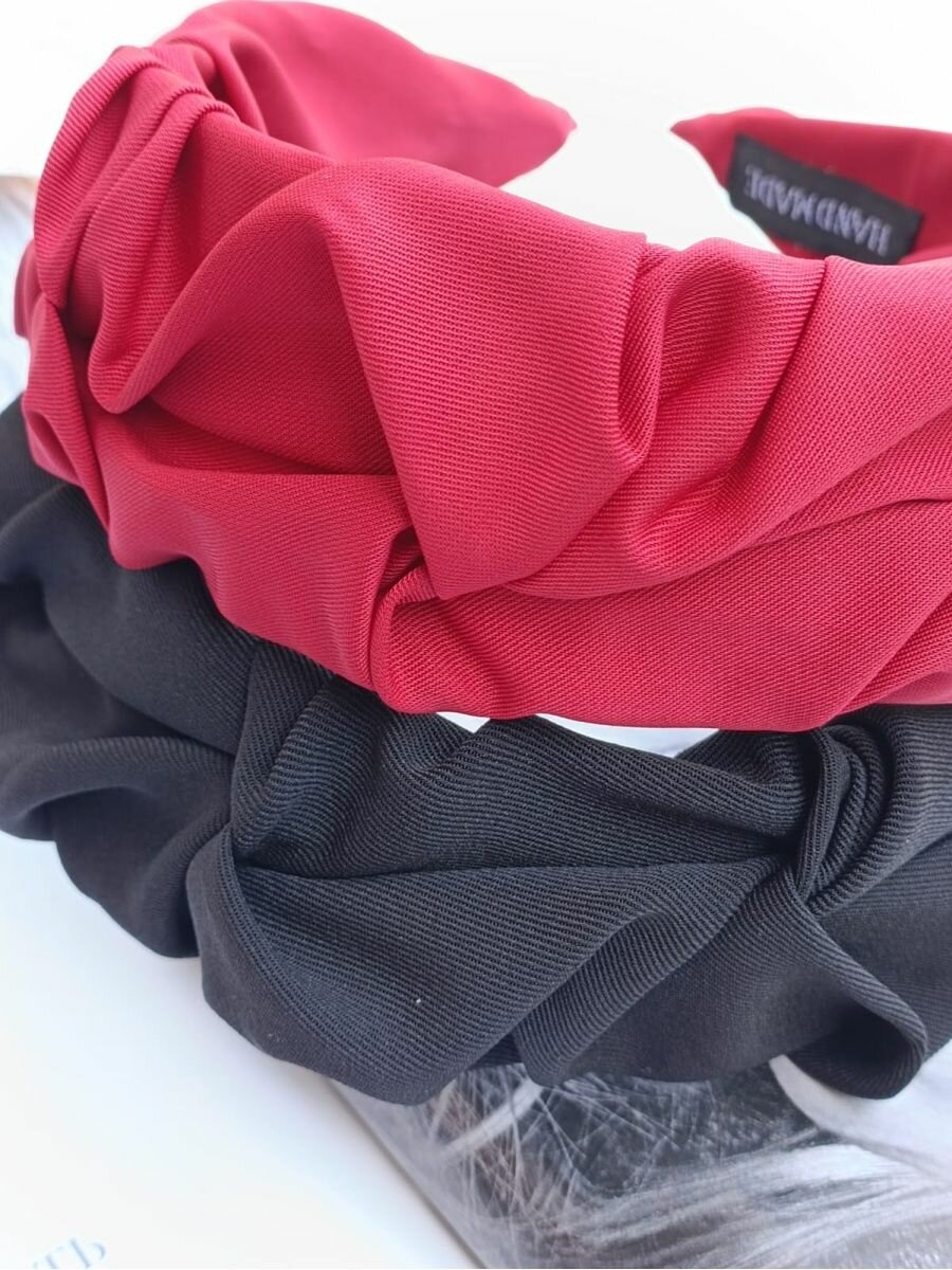 Ободок для волос тканевый красновато-бордовый с узлом интересное: