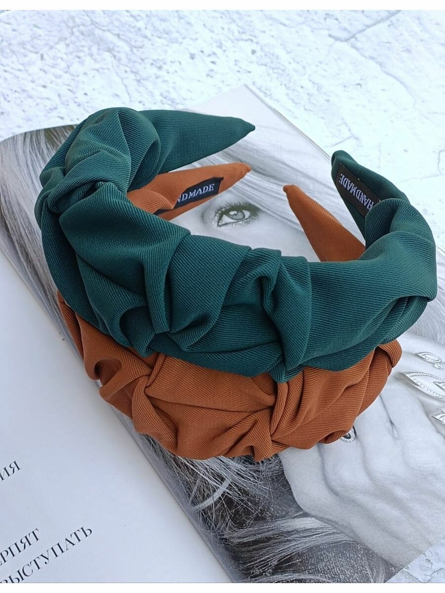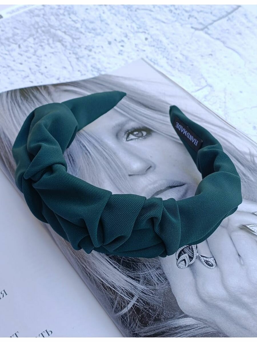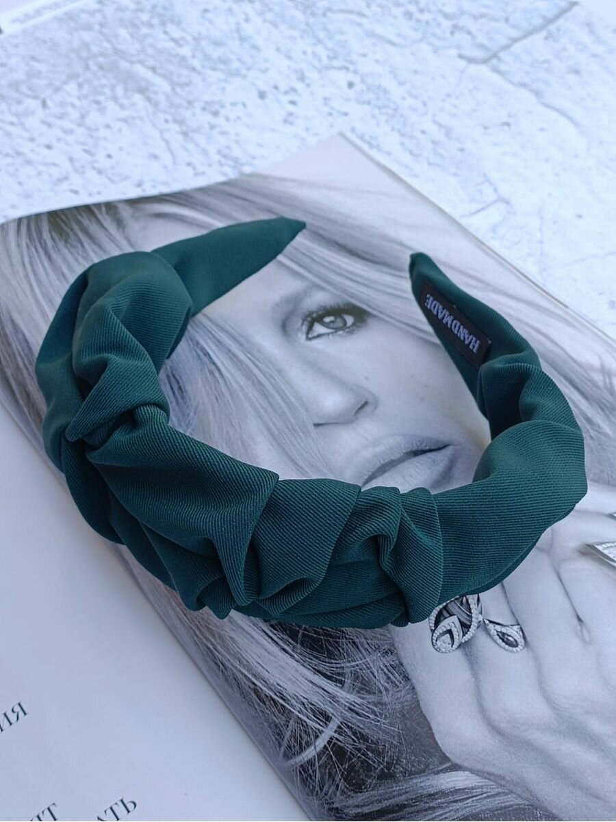 Ободок для волос тканевый темно-зеленый с узлом интересное: