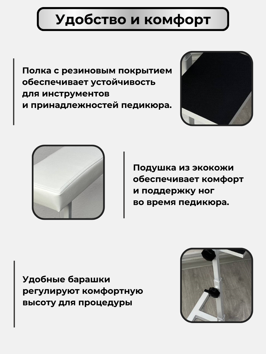 Ниже Вы можете прочитать отзывы на Подставка для педикюра с полочкой, ознакомится с подробными характеристиками, посмотреть интересные обзоры и фотографии на Подставка для педикюра с полочкой.