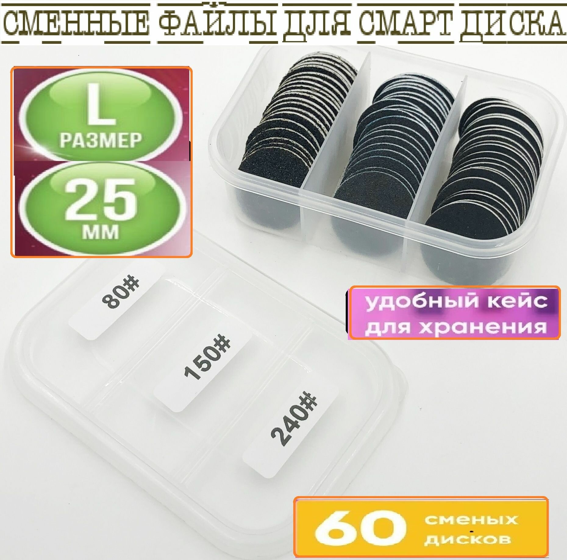 Сменные файлы для педикюра на смарт диск L-25мм,80,150,240 гритт; Smart (Смарт), набор Сменный Файл-диск для педикюра. интересное: