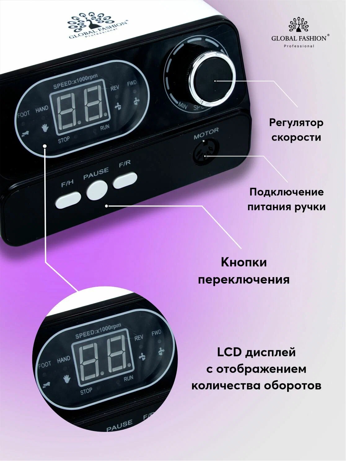 Аппарат для маникюра и педикюра Global Fashion, GF-722, 50000 об. 80 W, white интересное: