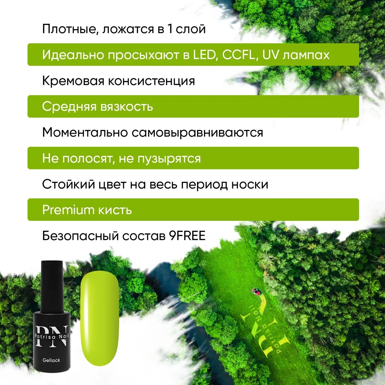 Трехфазный гель-лак для ногтей TREND GREEN от Patrisa Nail №444, тот самый зеленый, 8 мл