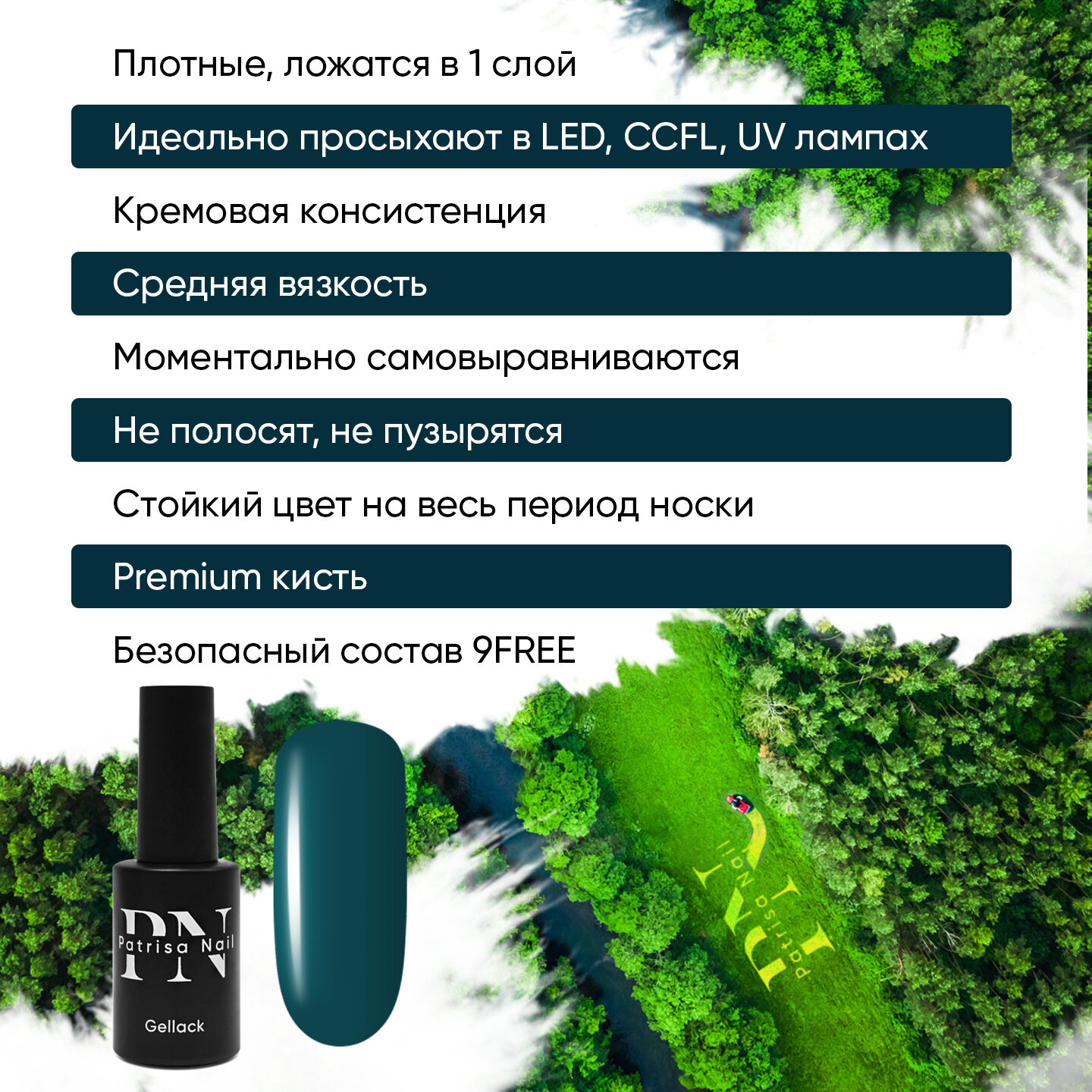Трехфазный гель-лак для ногтей TREND GREEN от Patrisa Nail №446, глубокий лесной зеленый, 8 мл