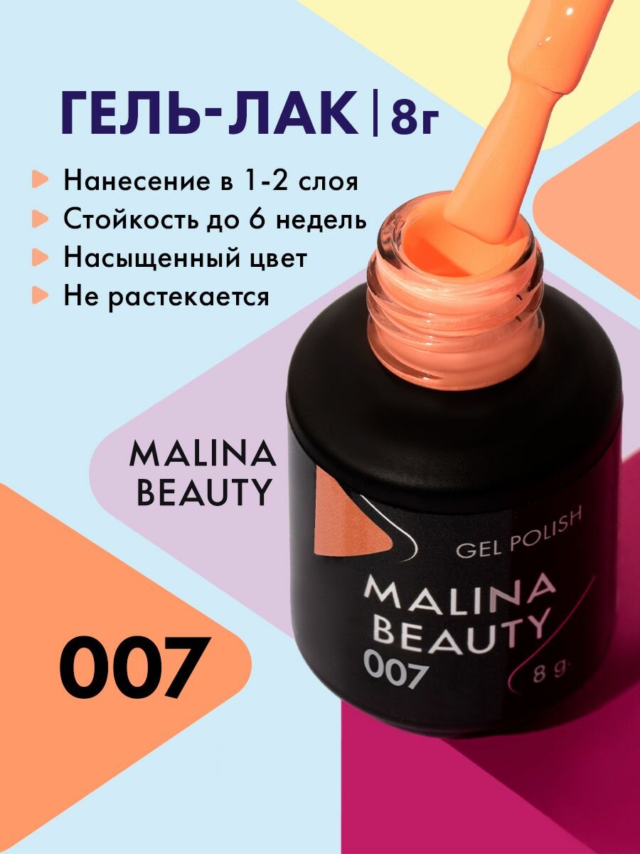 Купить Гель-лак 007 Пастельный оранжевый MALINA BEAUTY 8 мл