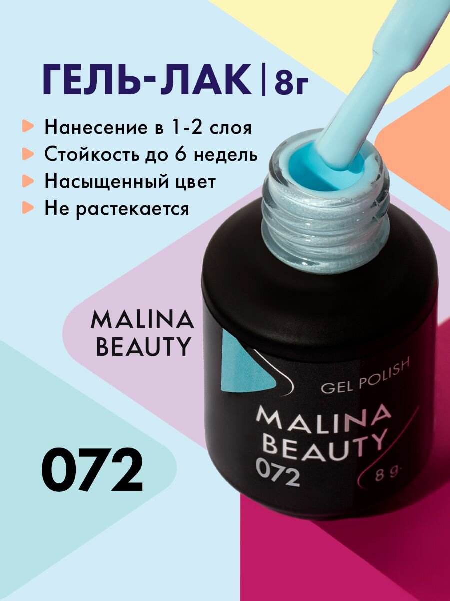 Купить Гель-лак 072 Пастельный голубой MALINA BEAUTY 8 мл