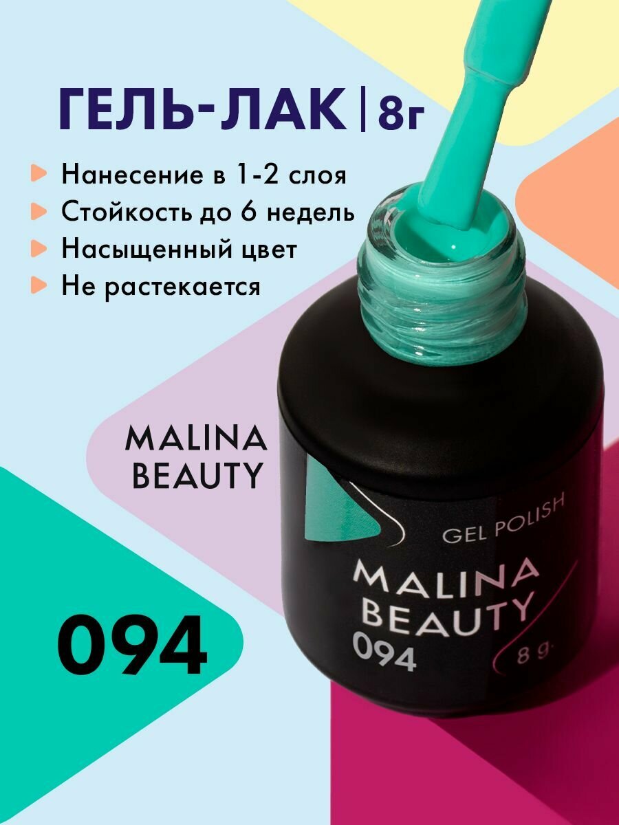Купить Гель-лак 094 Светло-изумрудный MALINA BEAUTY 8 мл