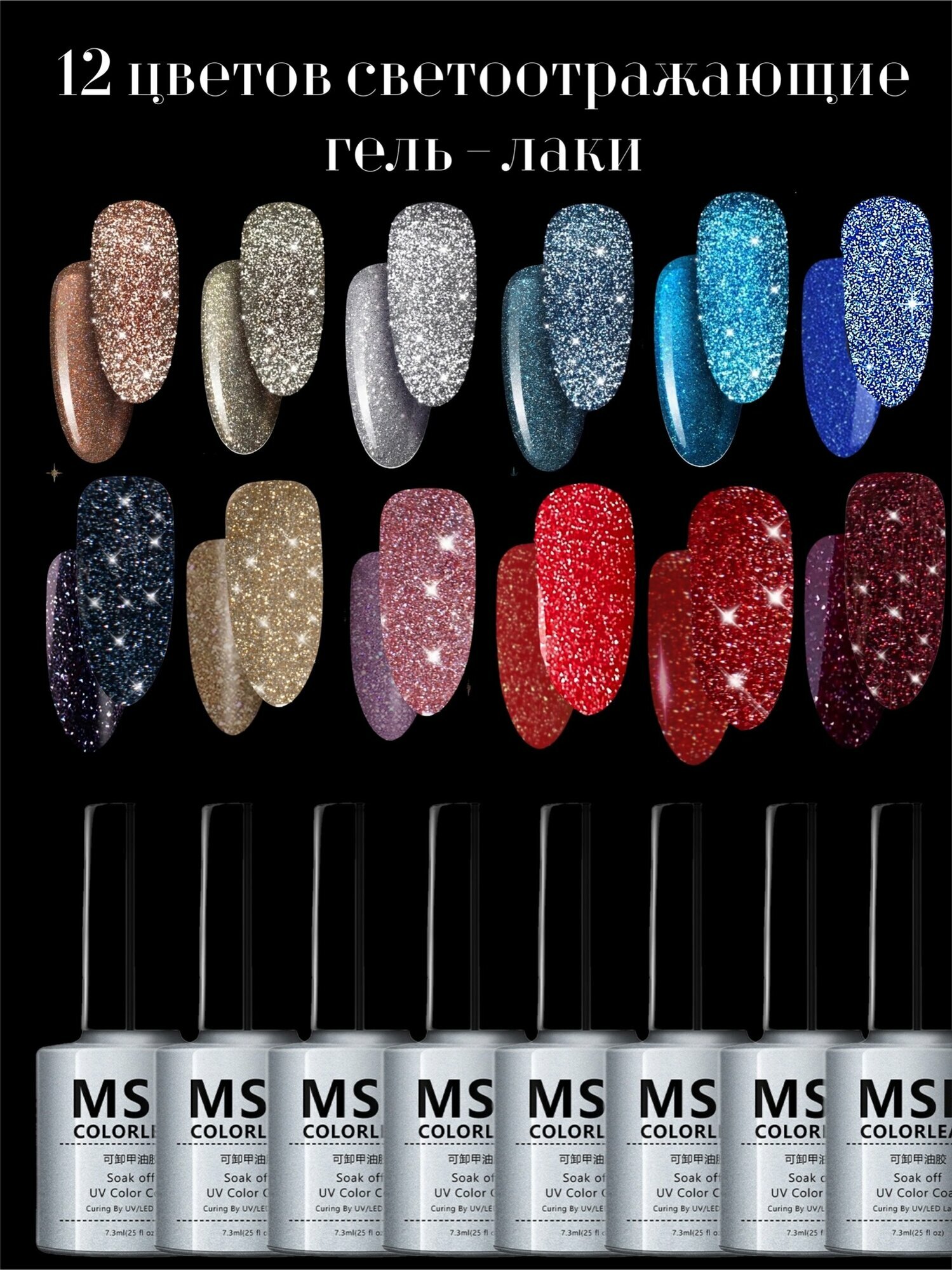 Купить Набор гель-лаков 12 штук, светоотражающие, 7,3 мл
