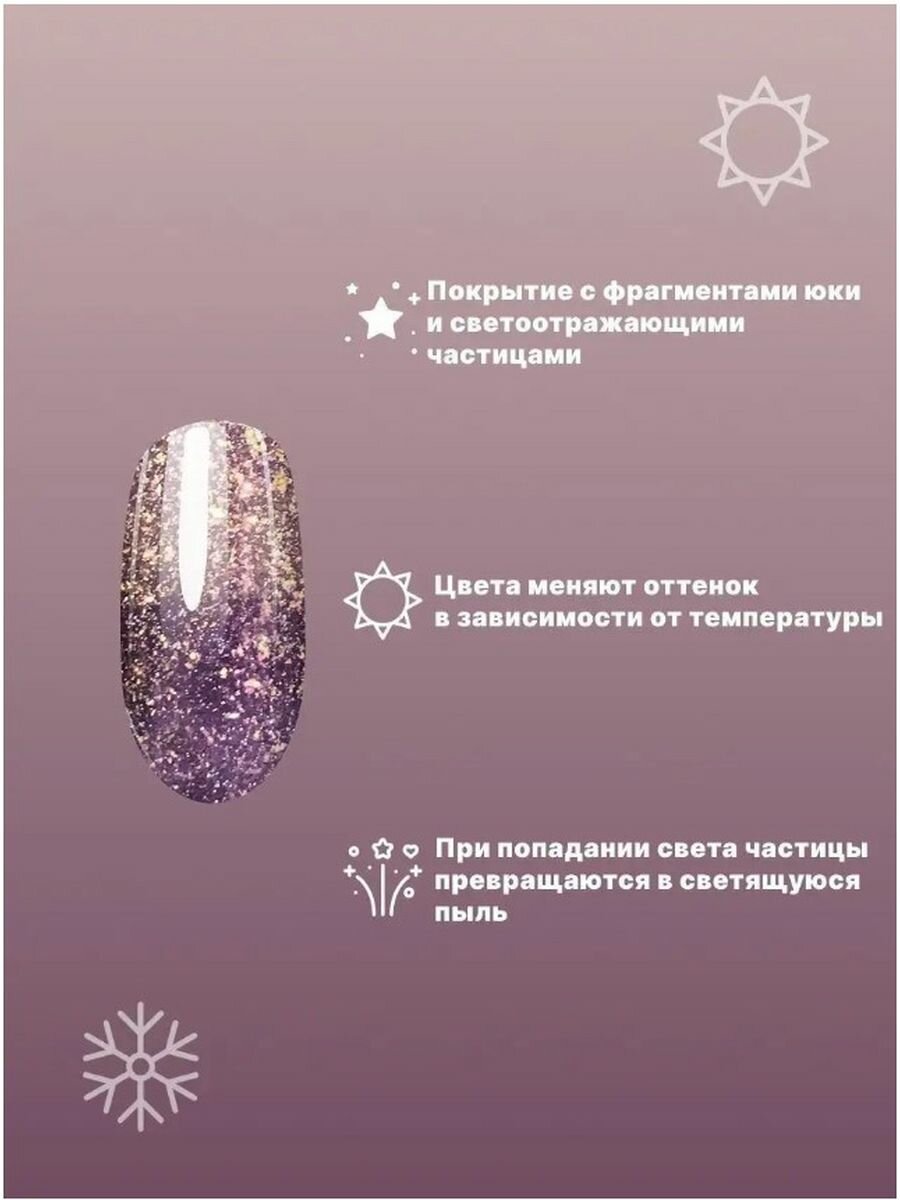 СохранитьГель-лак светоотражающий Shimeria Thermo/термо гель-лак/гель-лак с хлопьями юки, 7 мл №7260 Runail Professional интересное: