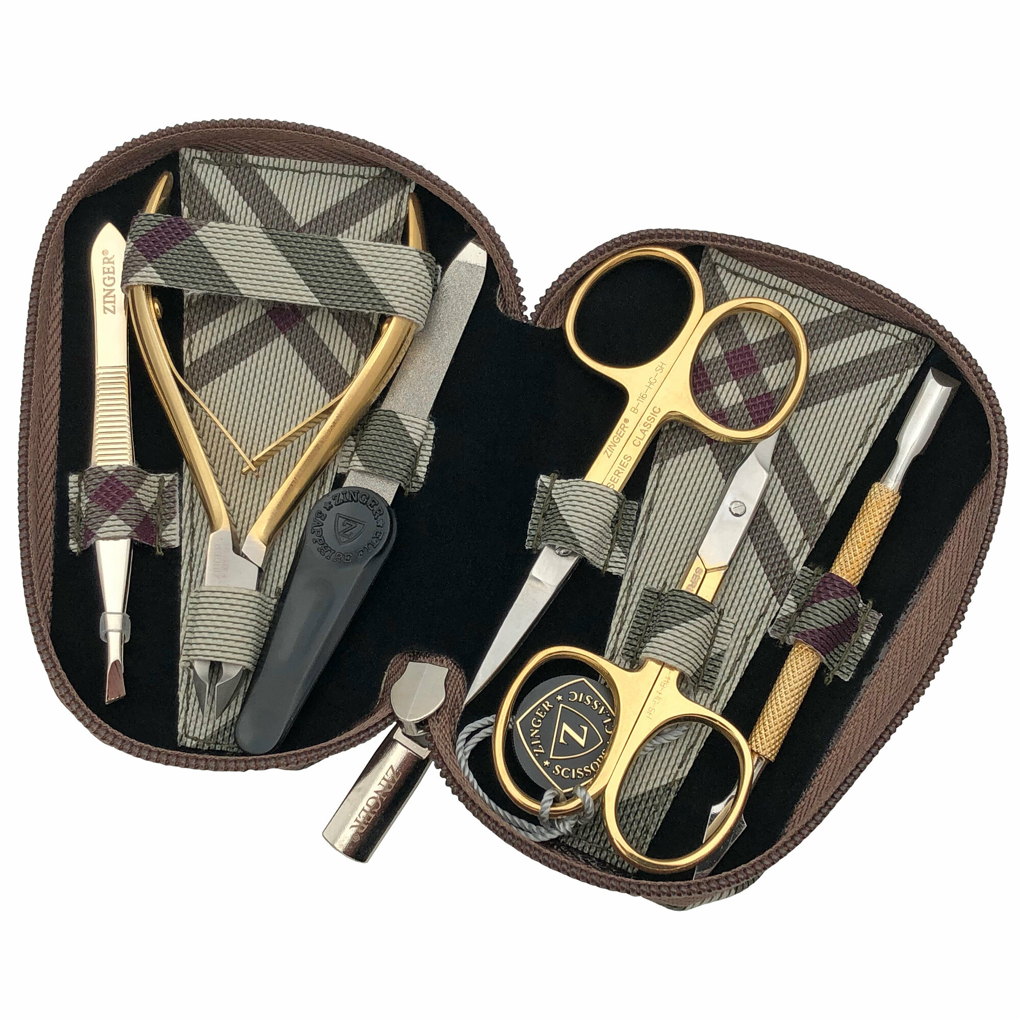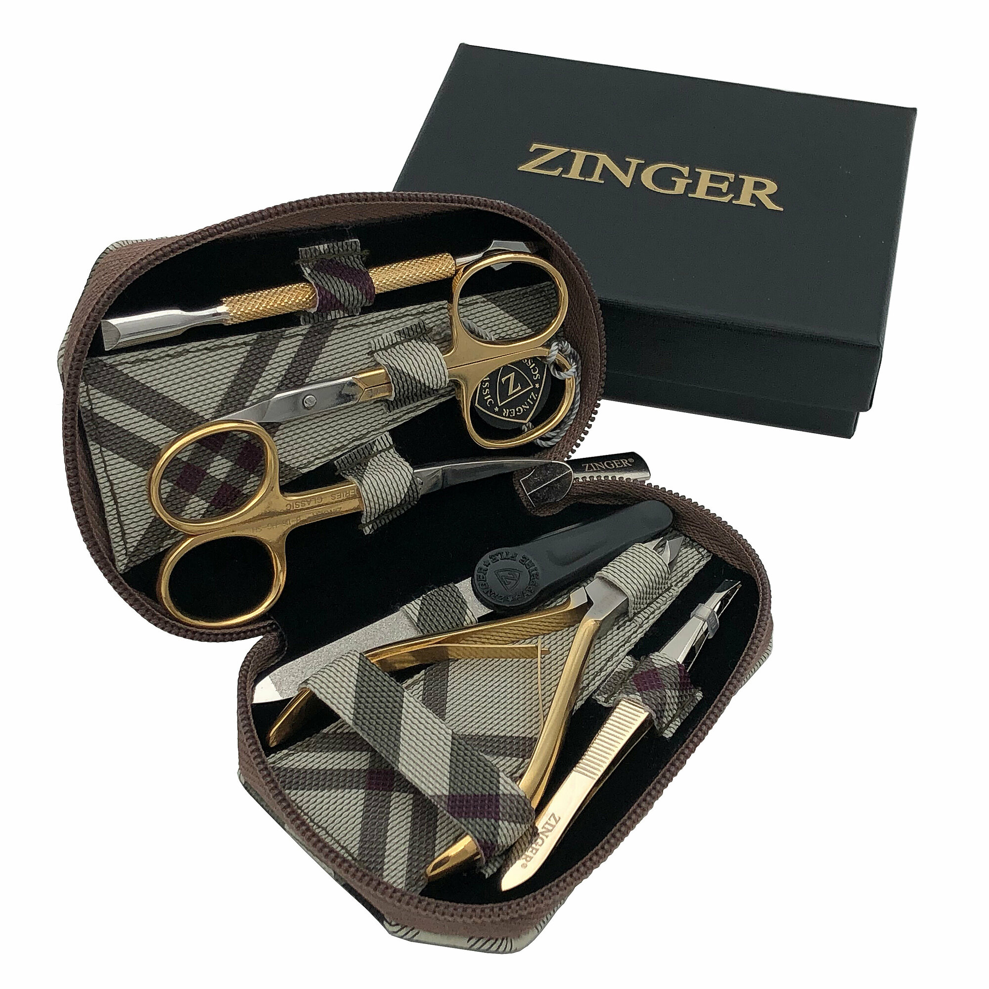 Маникюрный набор Zinger 7103 G, 6 предметов, позолоченный/бежевый клетка