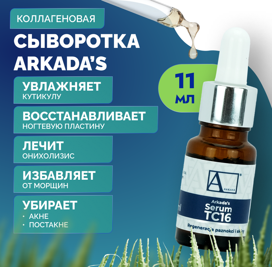 Arkada Сыворотка коллагеновая для ногтей и кожи Serum TC16, 11 мл, прозрачный интересное: