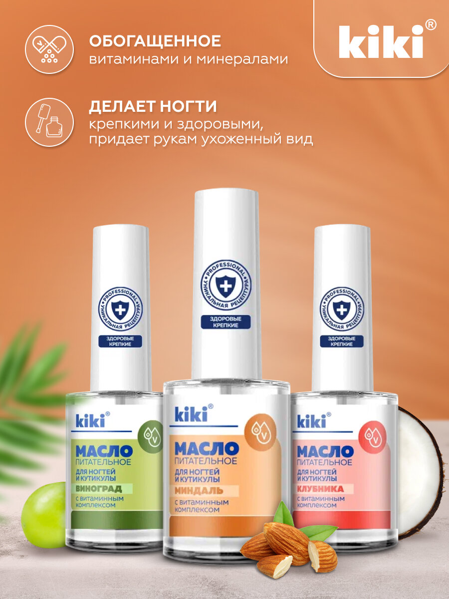 Масло для ногтей и кутикулы kiki миндаль, укрепление,питание, восстановление, для маникюра и педикюра, 12 мл