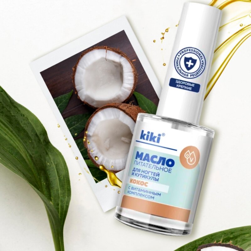 Масло для ногтей и кутикулы kiki для маникюра, педикюра, укрепление питание восстановление, с натуральным кокосовым маслом и витаминами А, Е, С, D, 12 мл аромат кокос