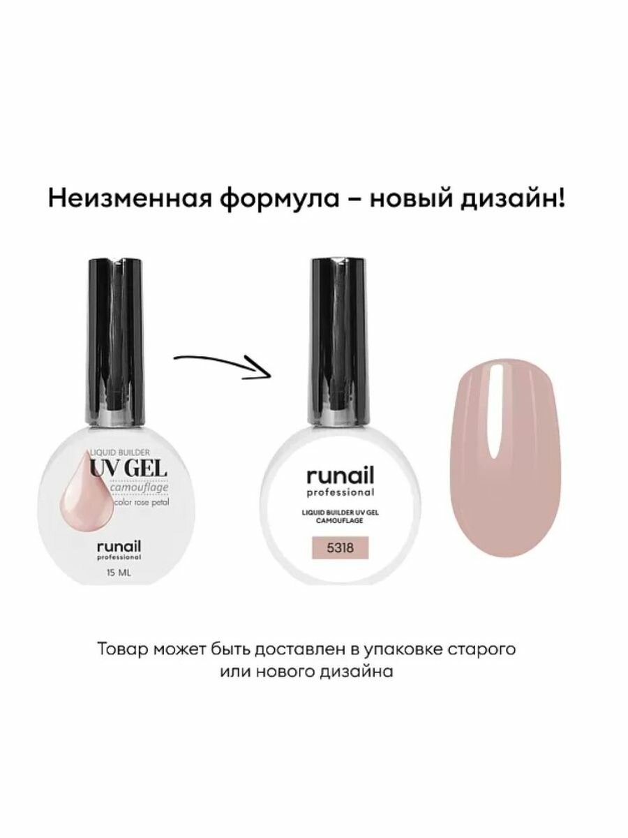 Купить Runail, Камуфлирующий жидкий Уф-гель (цвет: Чайная роза), 15 мл №5318