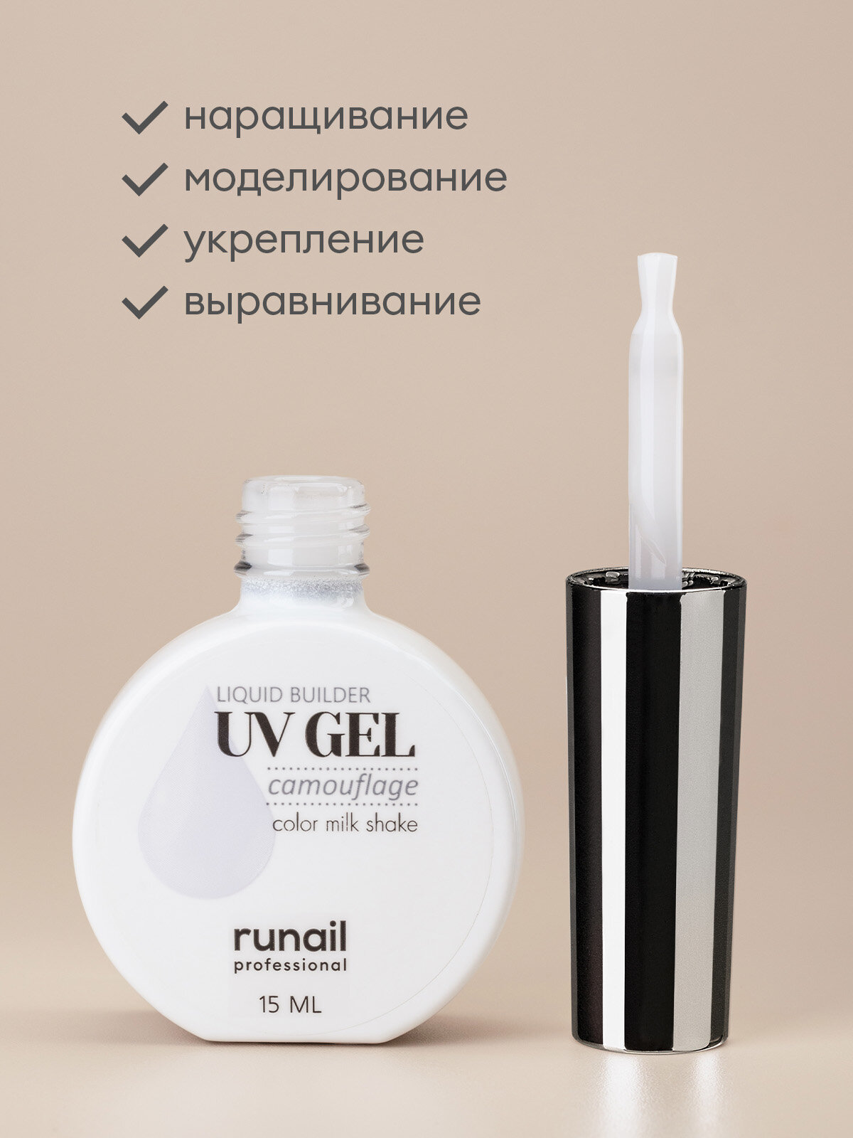 Камуфлирующий жидкий Уф-гель Runail,Сияющий молочный коктейль, 15 мл