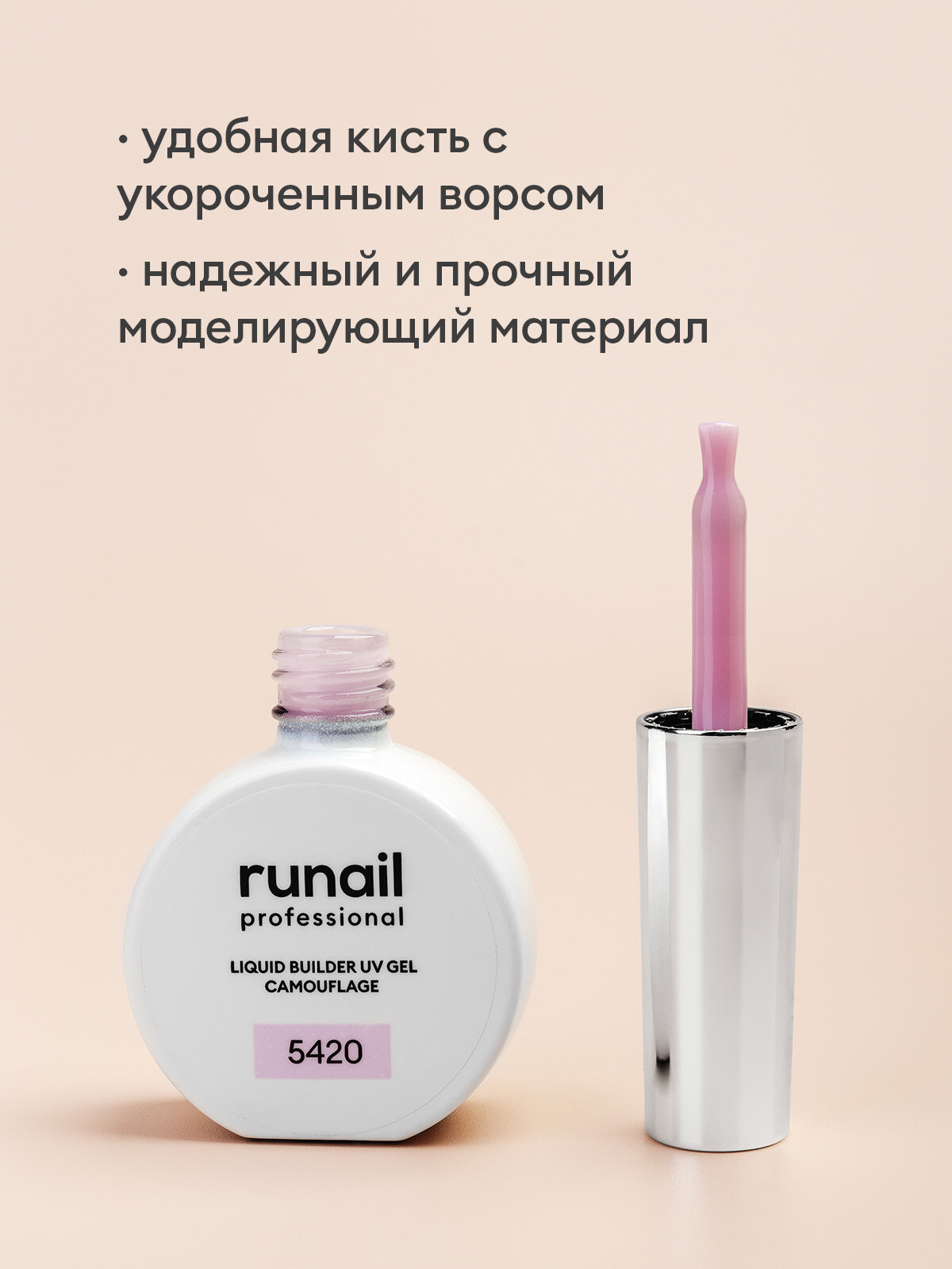Гель для наращивания ногтей RuNail Professional камуфлирующий 5423 Сияющий нюд, флакон 15 мл