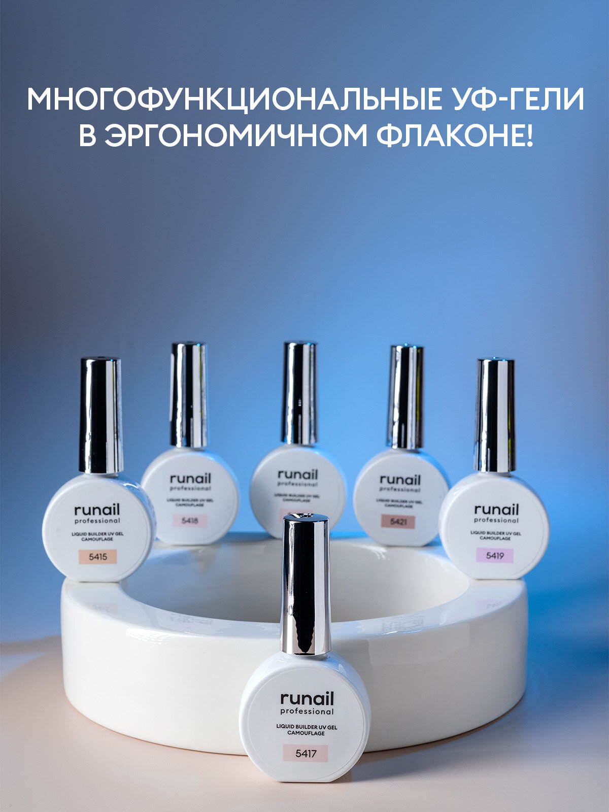 Камуфлирующий жидкий Уф-гель Runail, Серебристый фарфор, 15 мл