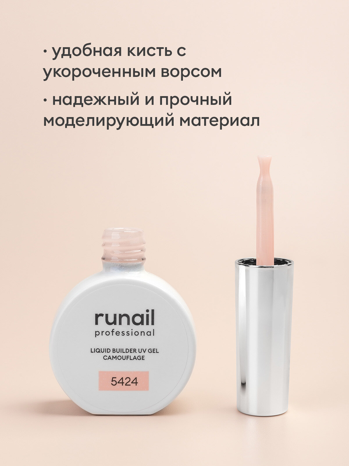 Гель для наращивания ногтей RuNail Professional камуфлирующий 5423 Сияющий нюд, флакон 15 мл
