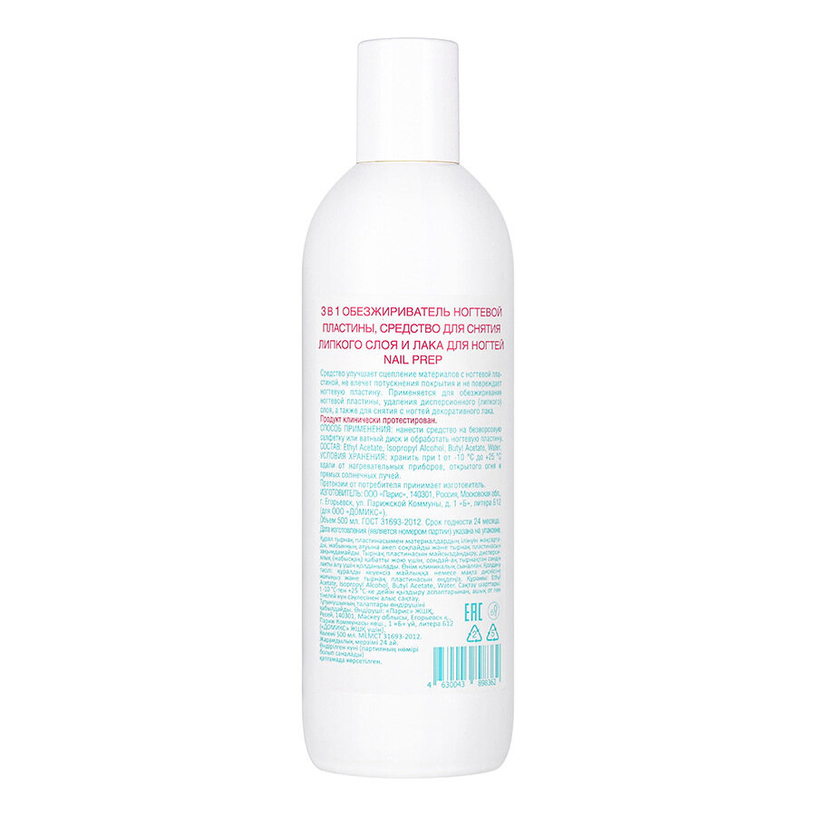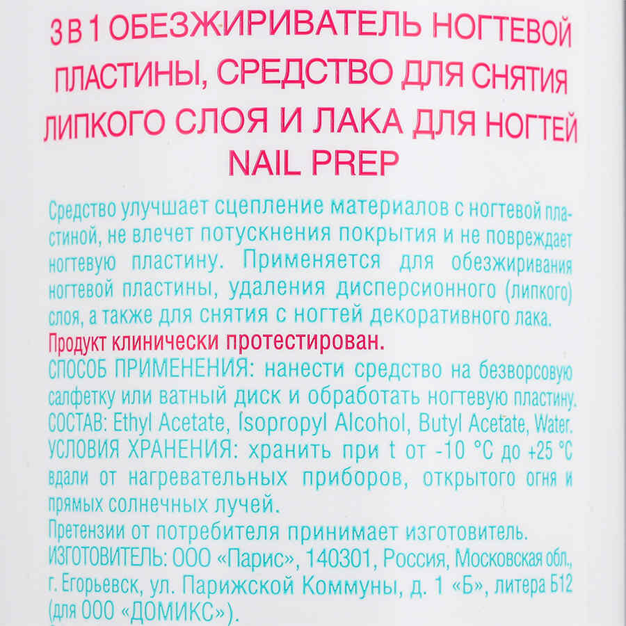 Domix Green Professional, Обезжириватель и ср-во для снятия липкого слоя и лака NAIL PREP 3в1,500 мл