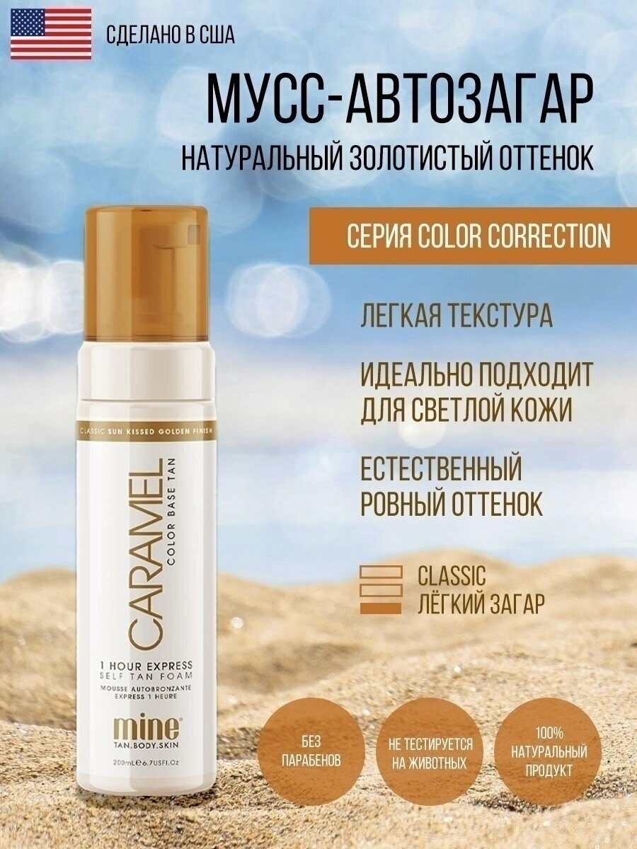 MINE TAN, Классический мусс автозагар на каждый день с натуральным, золотистым оттенком Caramel Self Tan Foam, 200 мл интересное: