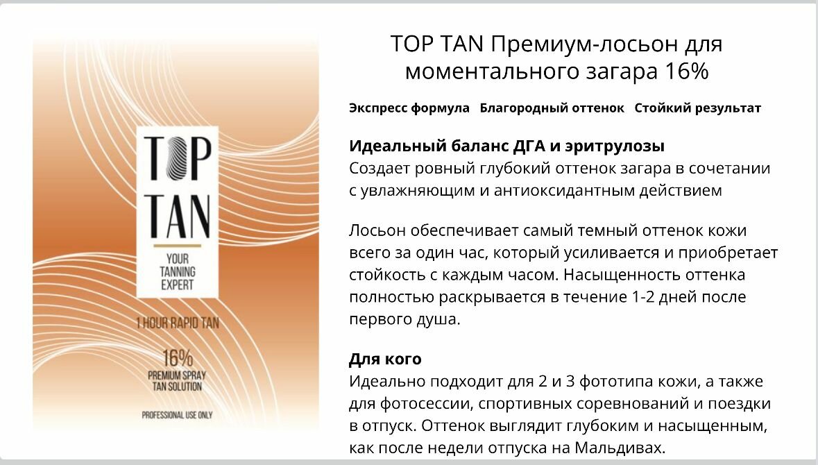 Лосьон для моментального загара TOP TAN 16% DHA 1000мл интересное: