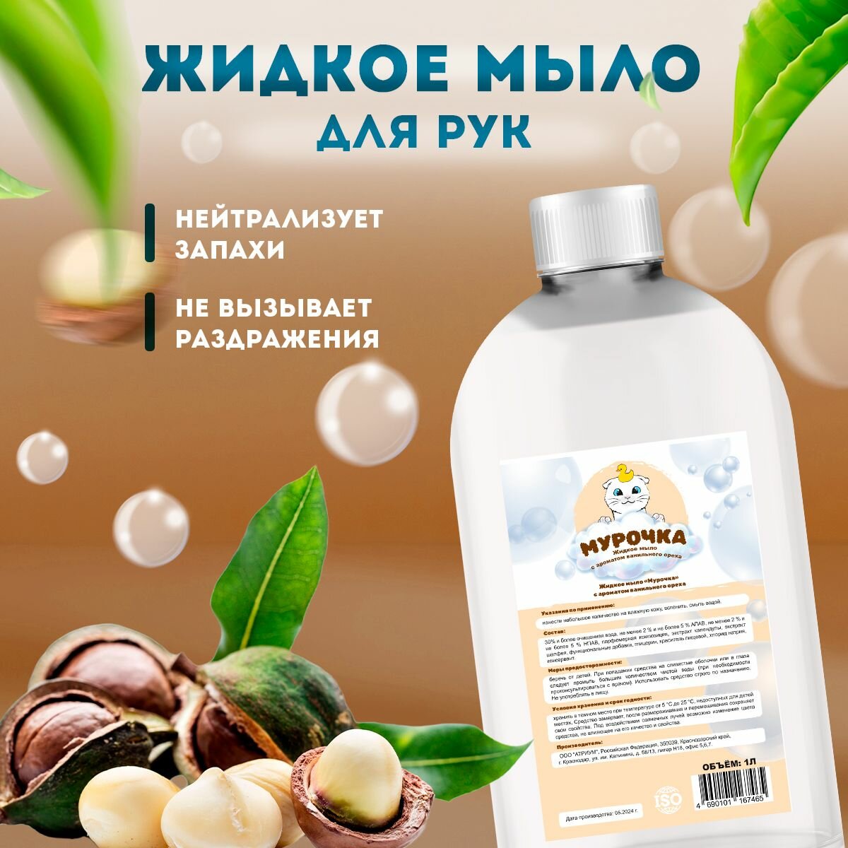 Жидкое мыло для рук "Ванильный орех" 1л интересное: