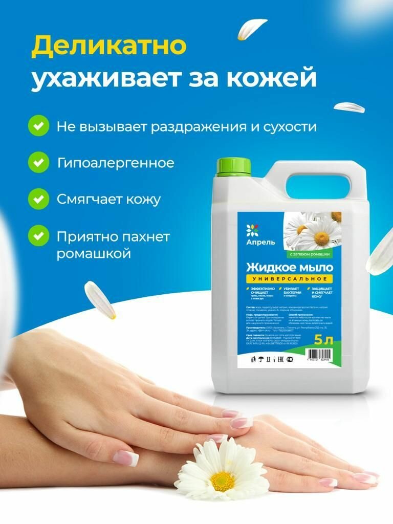 Гипоаллергенное жидкое мыло Опрель, Ромашка, для рук и тела, 5 л интересное: