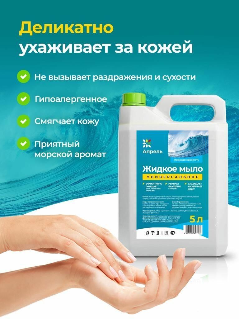 Гипоаллергенное косметическое жидкое мыло Опрель, Морская свежесть, 5 л интересное: