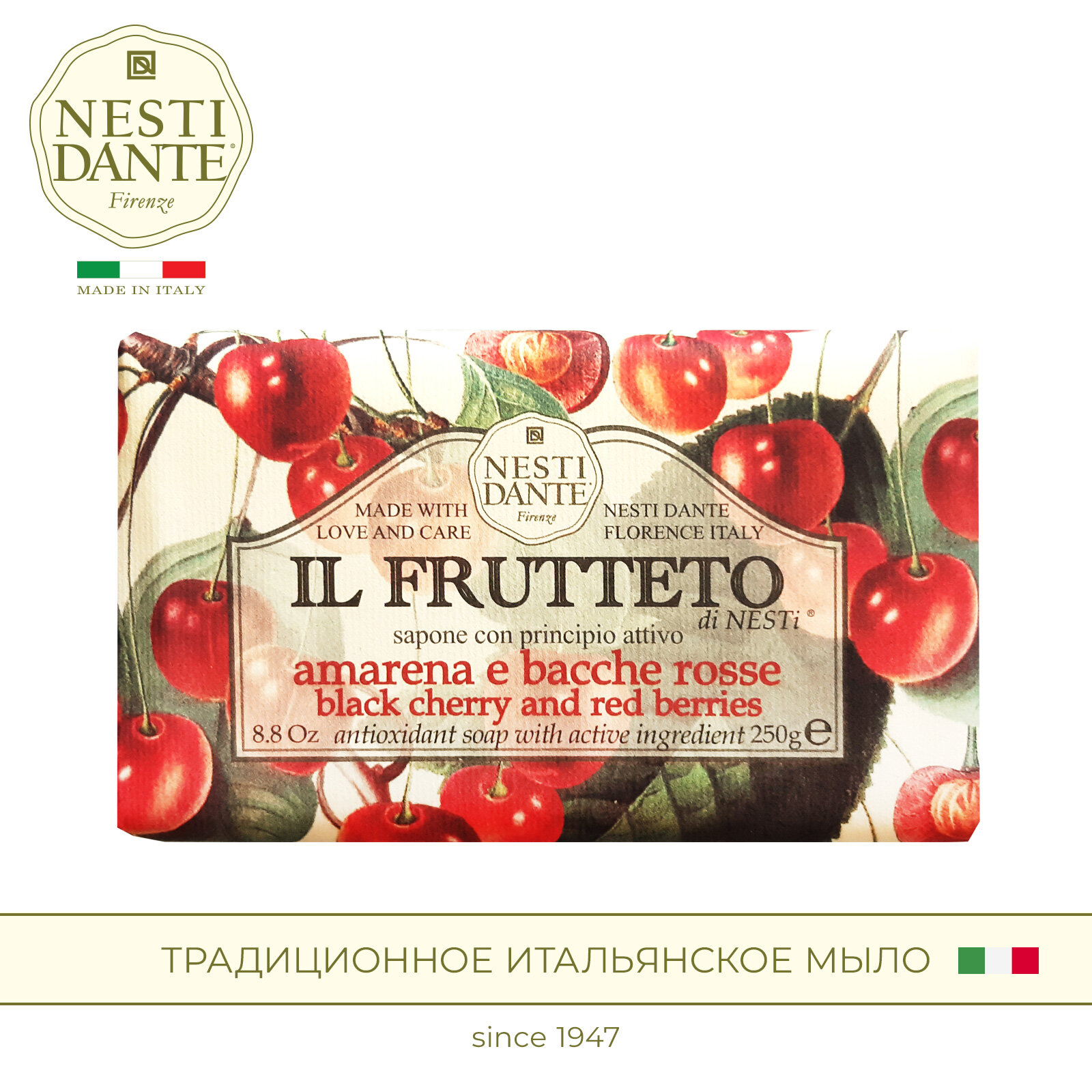Купить Мыло кусковое Nesti Dante Черешня и красные ягоды, 250г
