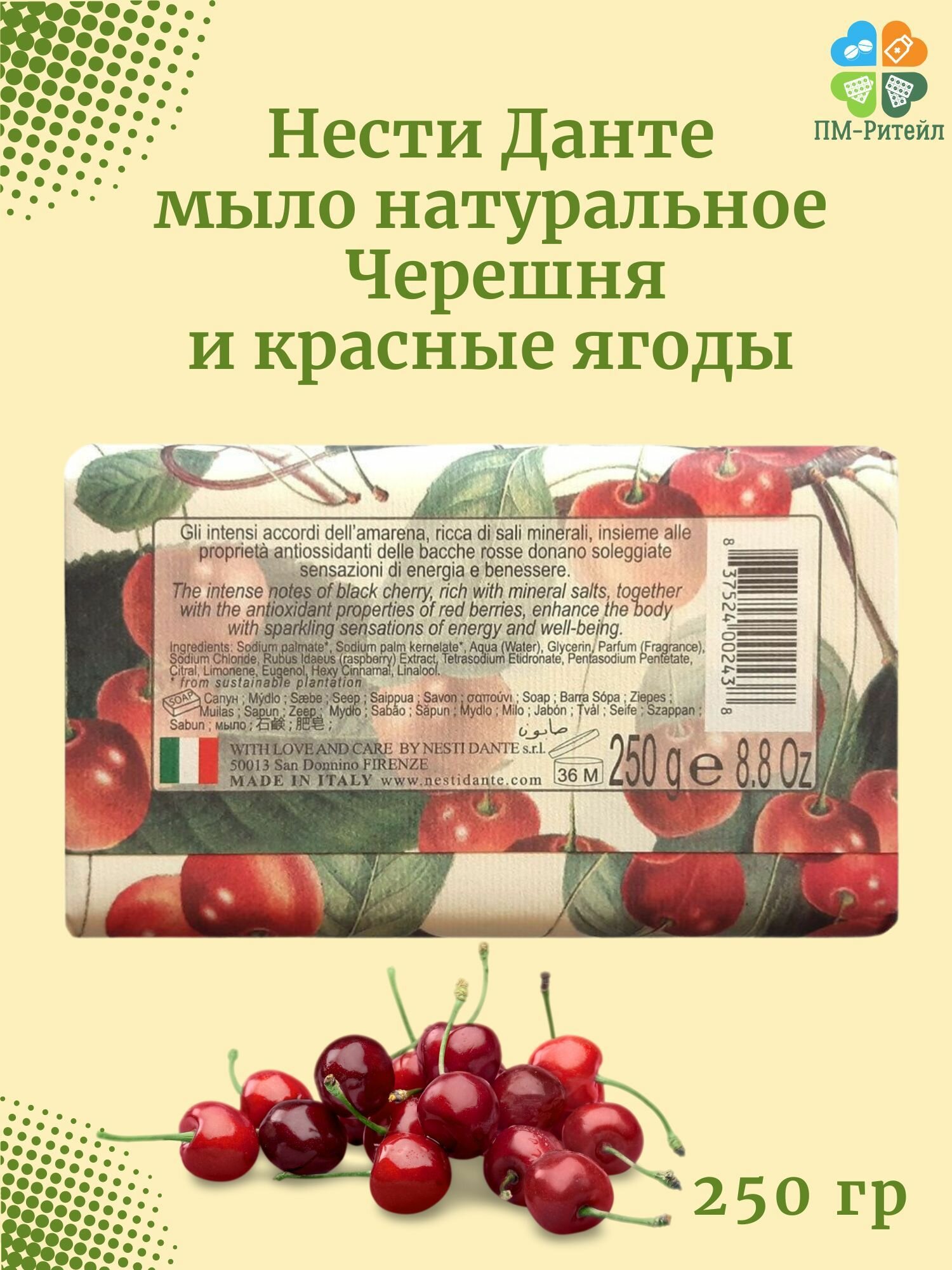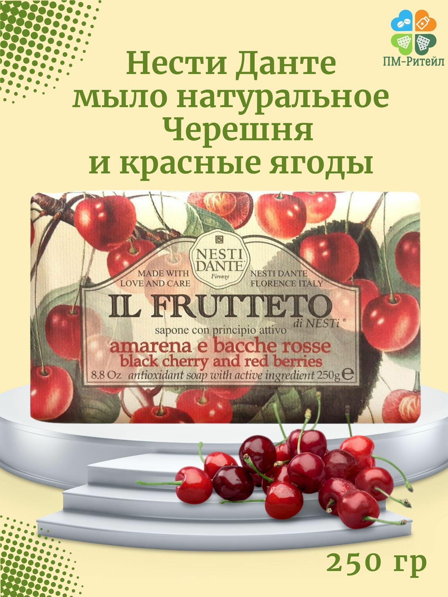 Мыло кусковое Nesti Dante Черешня и красные ягоды, 250г интересное: