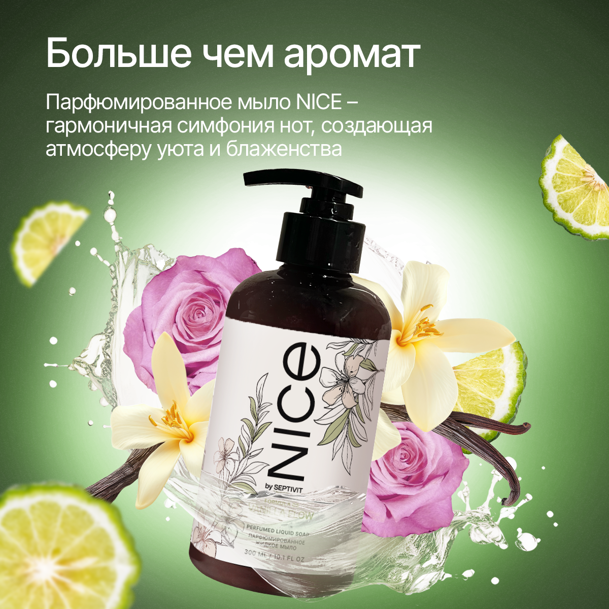 Жидкое мыло для рук парфюмированное NICE by Septivit "Formula 01" с дозатором 0,3л