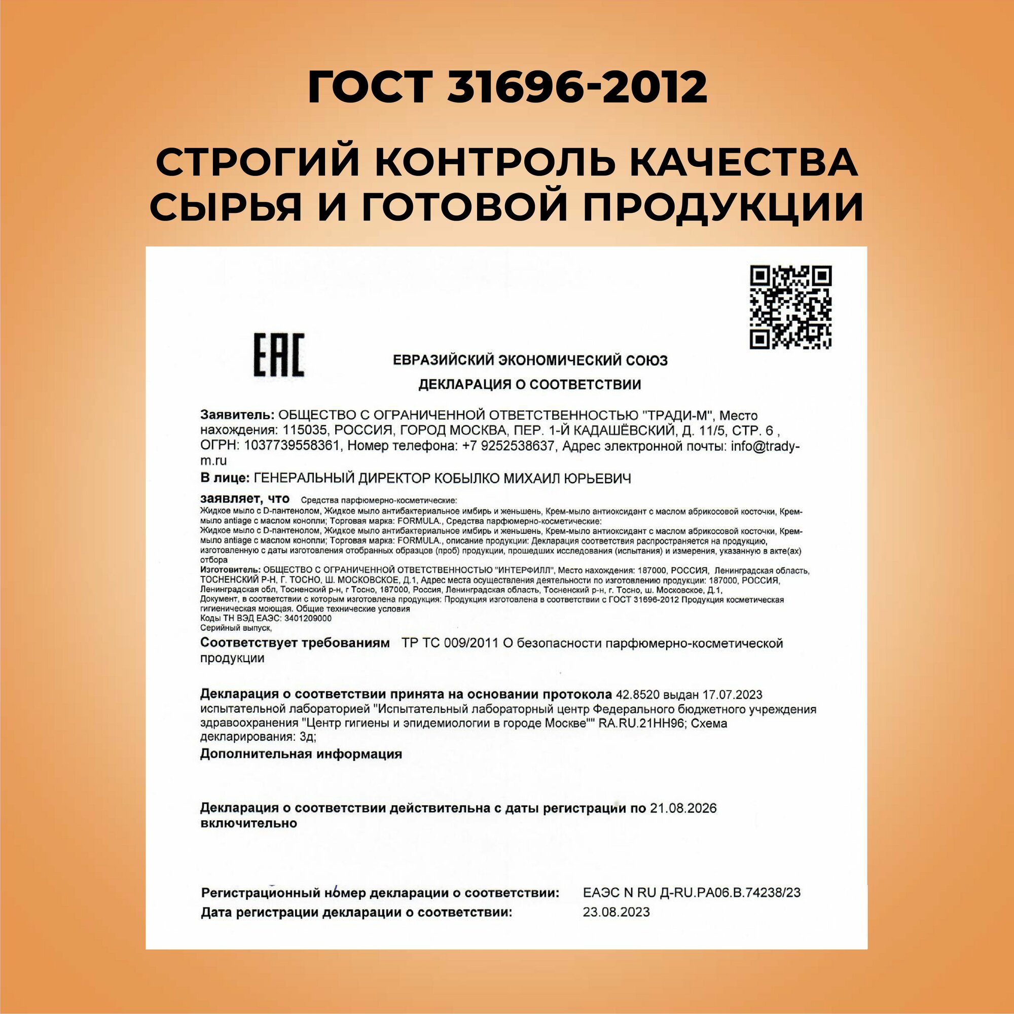 Formula Жидкое мыло антибактериальное имбирь и женьшень, 500 мл, Дой-пак 2 шт