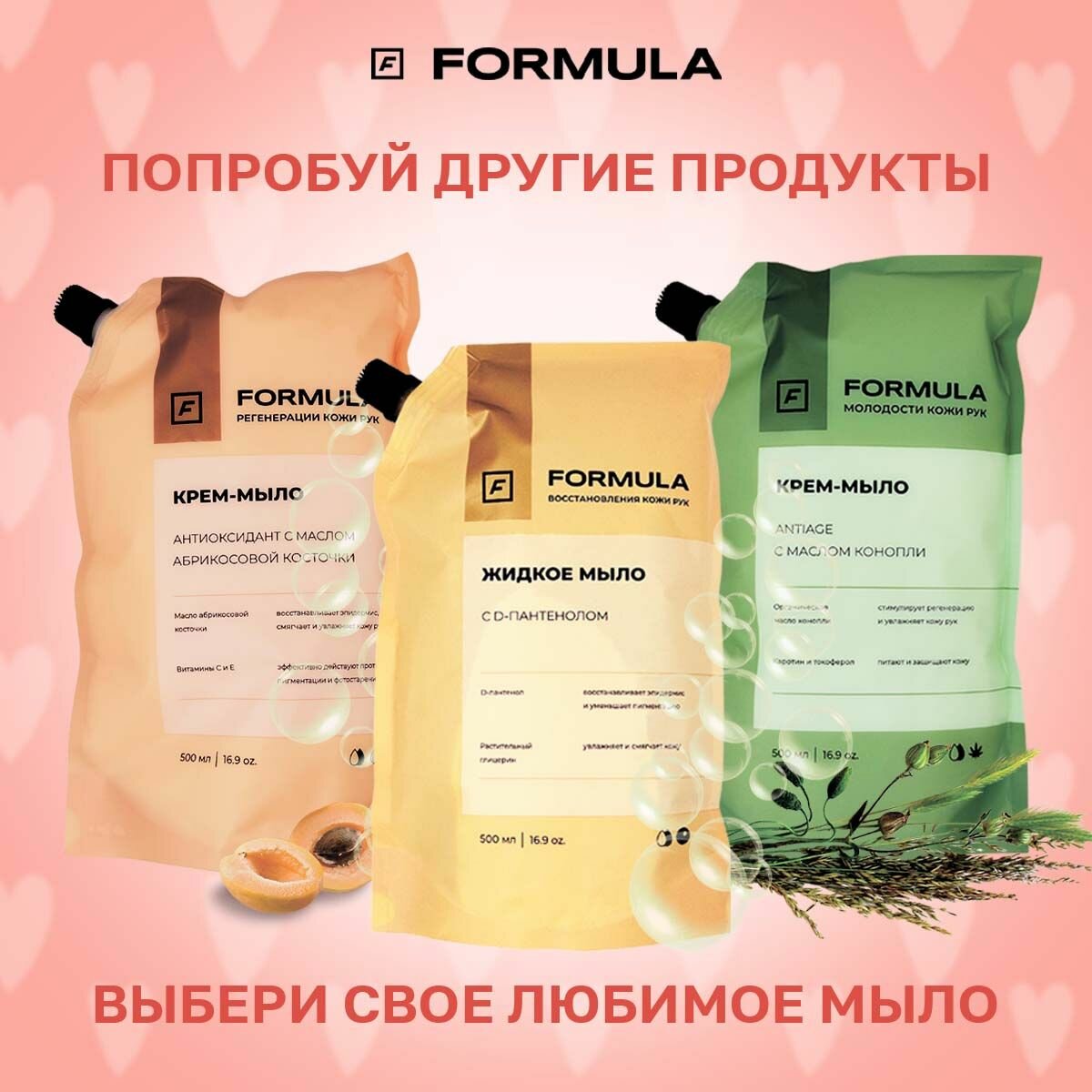 Formula Крем-мыло с маслом абрикосовой косточки, 500 мл, Дой-Пак