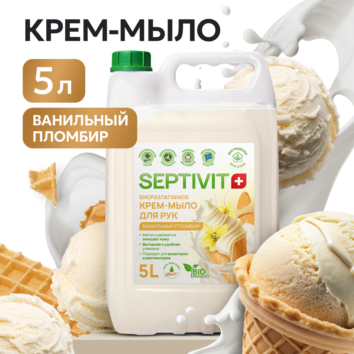 Крем мыло жидкое SEPTIVIT "Ванильный пломбир" 5л
