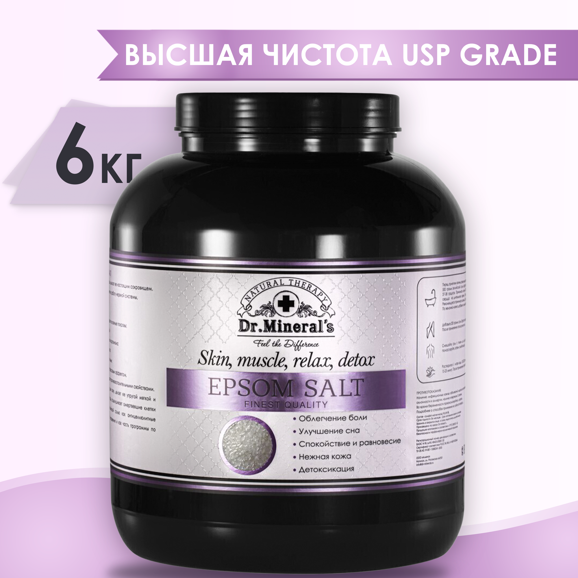 Английская соль для ванн Epsom от Dr. Mineral's, магниевая соль высшей чистоты, банка 6 кг