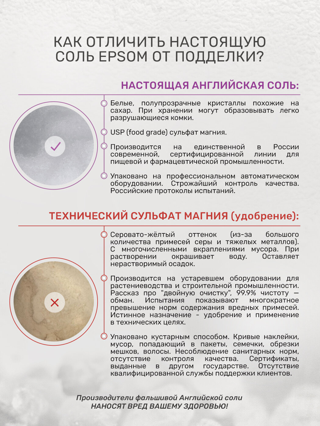 | Способ применения | принятие ванны: Перед принятием ванны рекомендуется выпить стакан воды или травяного чая. 500 грамм английской соли «Epsom» растворить в ванной при температуре 37-38 градусов. Принимать ванну 20-30 минут не погружаясь глубже линии сердца на длительное время. После принятия ванны ополоснуться водой. Рекомендуется принимать ванны 2-3 раза в неделю. |