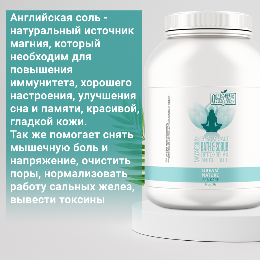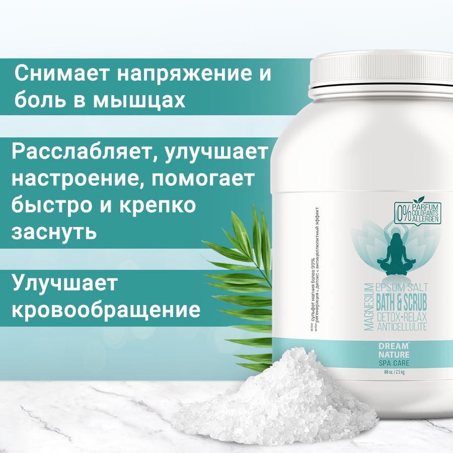 Соль для ванны английская с магнием DREAM NATURE SPA&CARE EPSOM SALT 2.5 кг интересное: