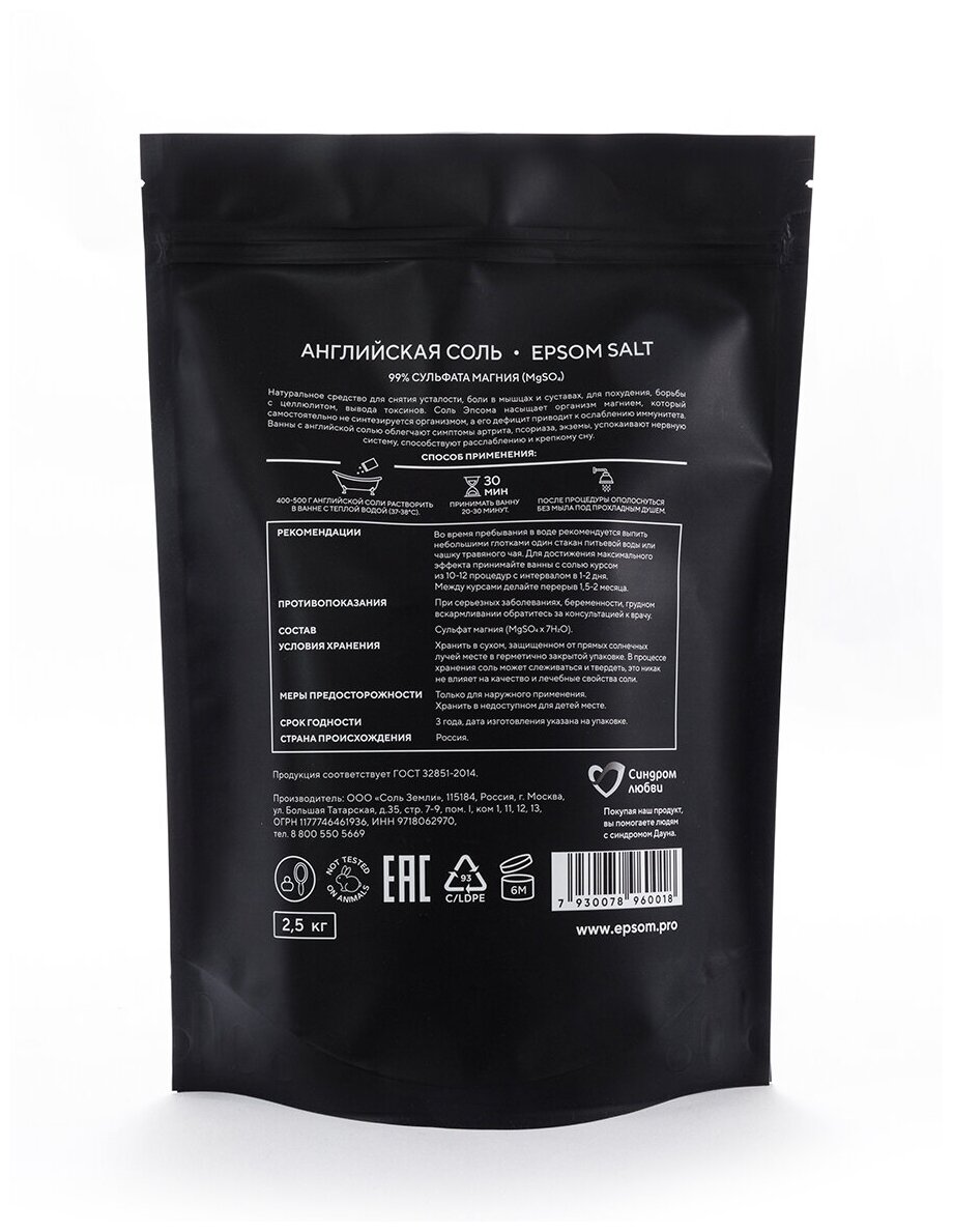 Epsom salt Соль для ванны натуральная, 2,5 кг Соль для ванны английская соль эпсома