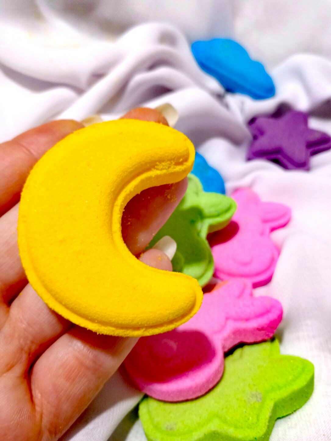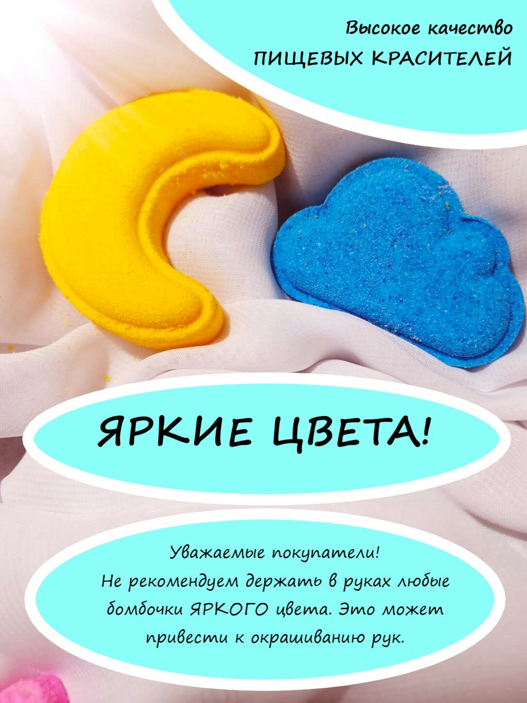 | Состав | бикарбонат натрия, лимонная кислота, кукурузный крахмал, сухие сливки, кокосовое масло, эмульгатор твин 80, пищевой краситель, косметическая отдушка, шиммер |