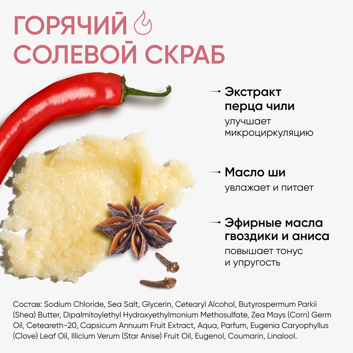 Скраб для тела антицеллюлитный горячий разогревающий с маслами интересное: