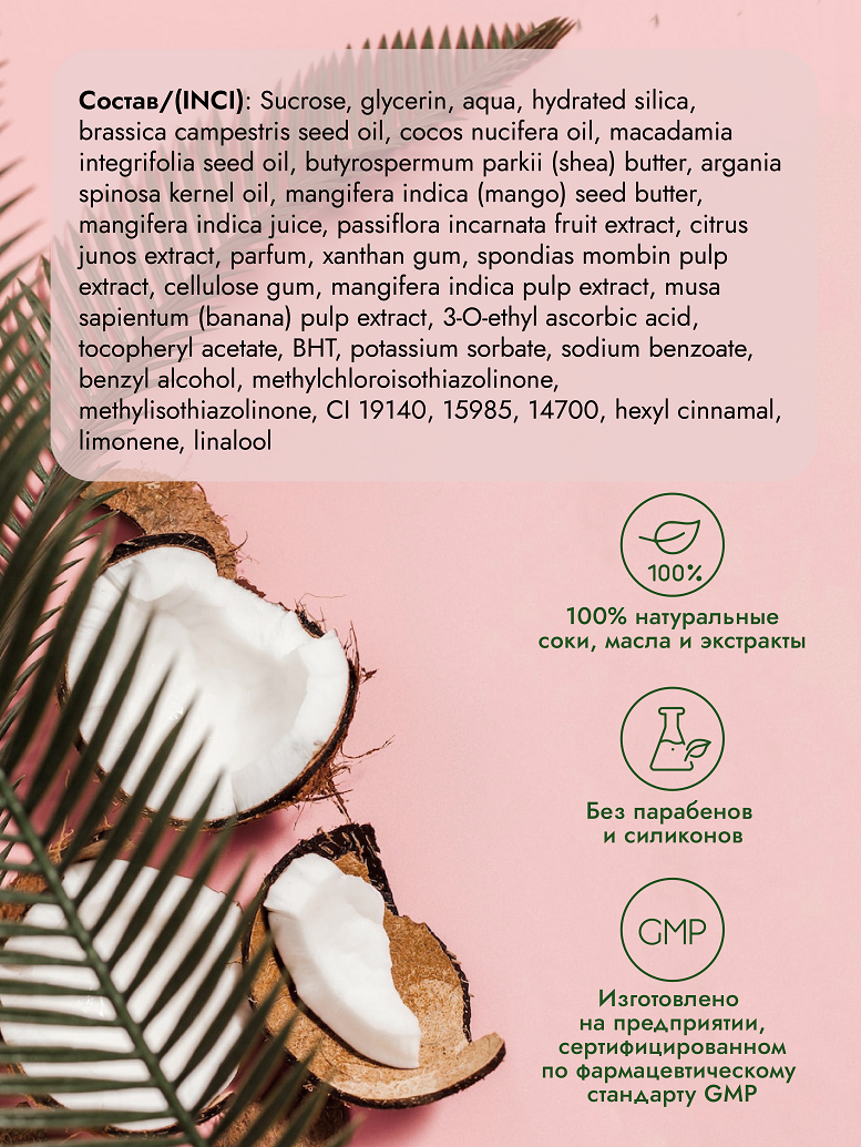 Сахарный скраб для тела антицеллюлитный "BALI VIBE" манго-маракуйя Fresh Punch 180г интересное: