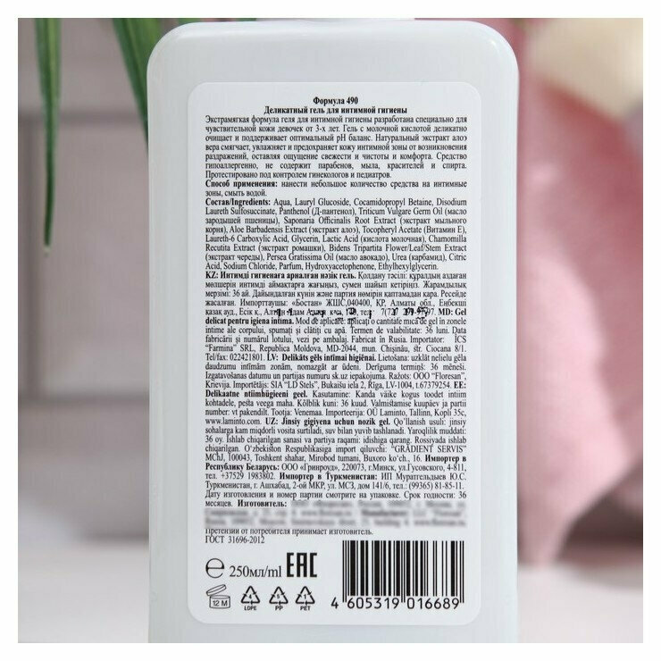 | Дополнительная информация | Способ применения: нанести небольшое количество средства на интимные зоны, смыть водой |
