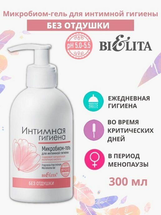 Белита Микробиом-гель для интимной гигиены, без отдушки, 300 мл