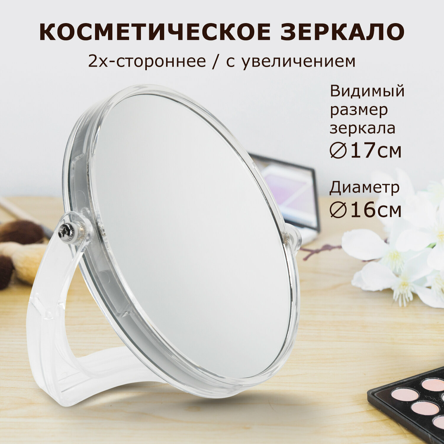 Зеркало настольное BRABIX, 19х16 см, двустороннее, с увеличением, прозрачная рамка, 607423