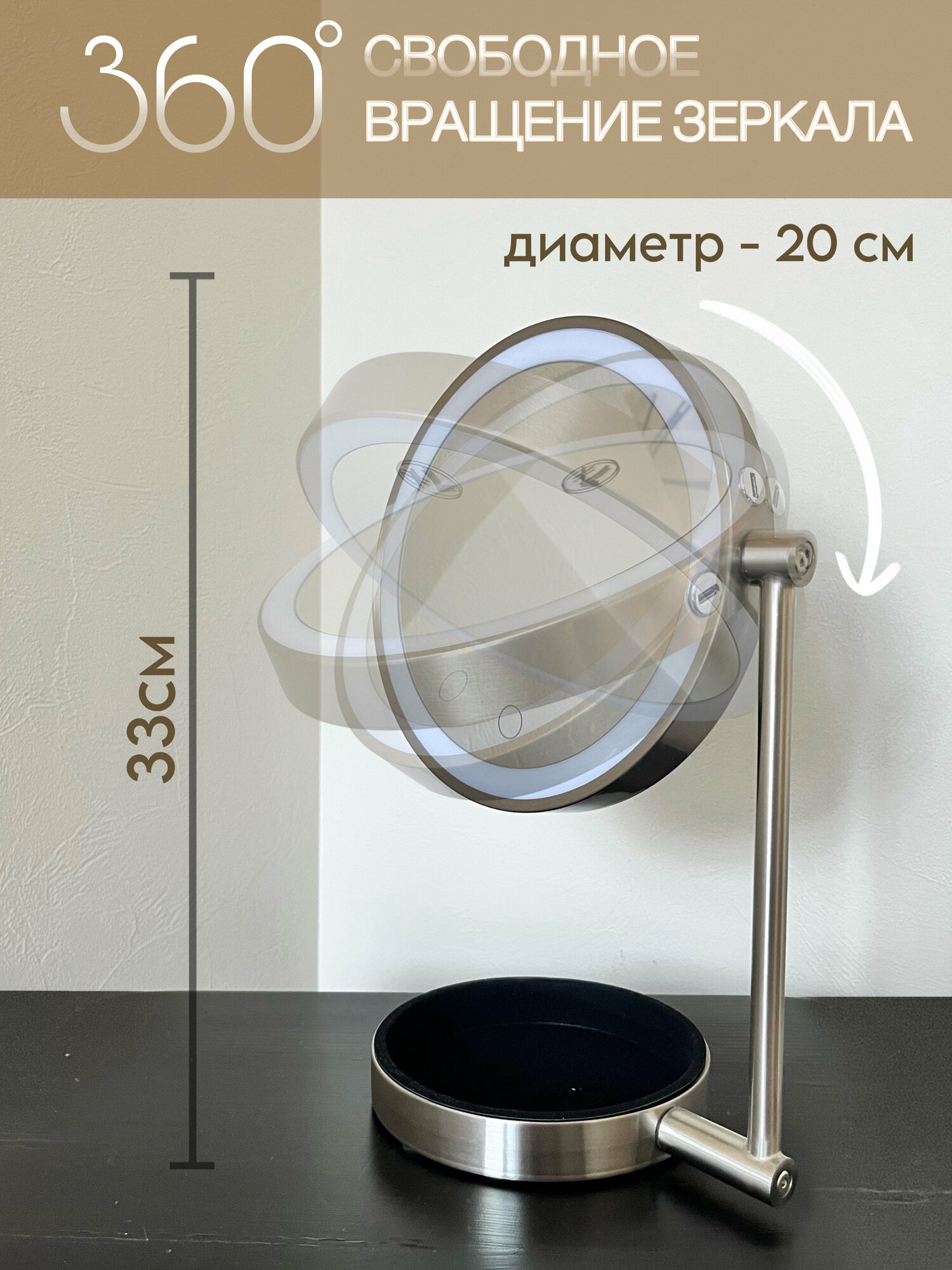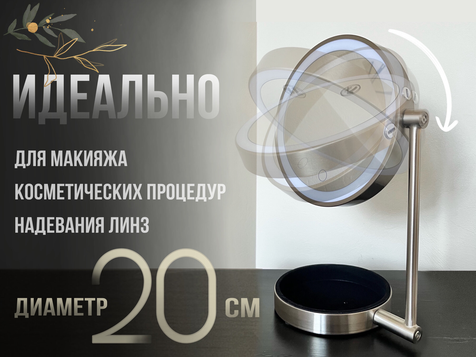 Зеркало Ø20 см., увеличительное х7 с подсветкой, двустороннее / VILAGIO / D849SE-GGP/nasten.hrom