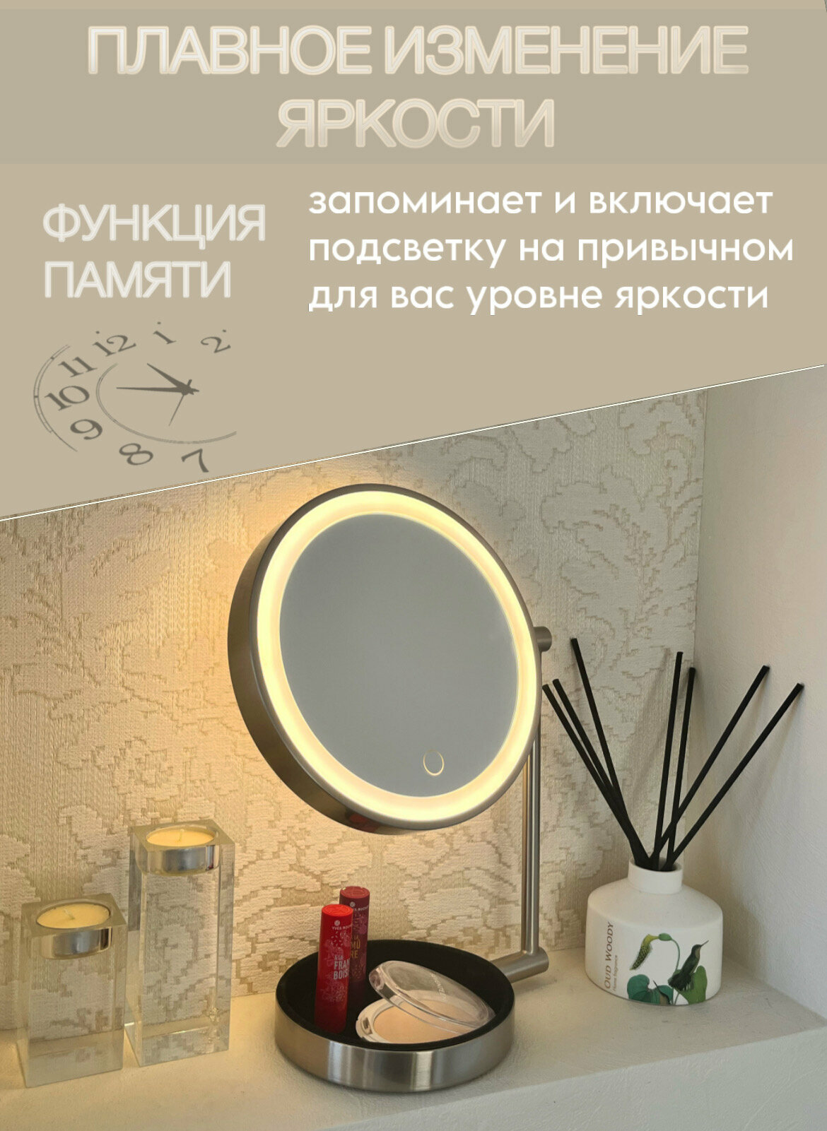 | Особенности | поворотное / регулировка яркости подсветки / с увеличением / сенсорный выключатель |
