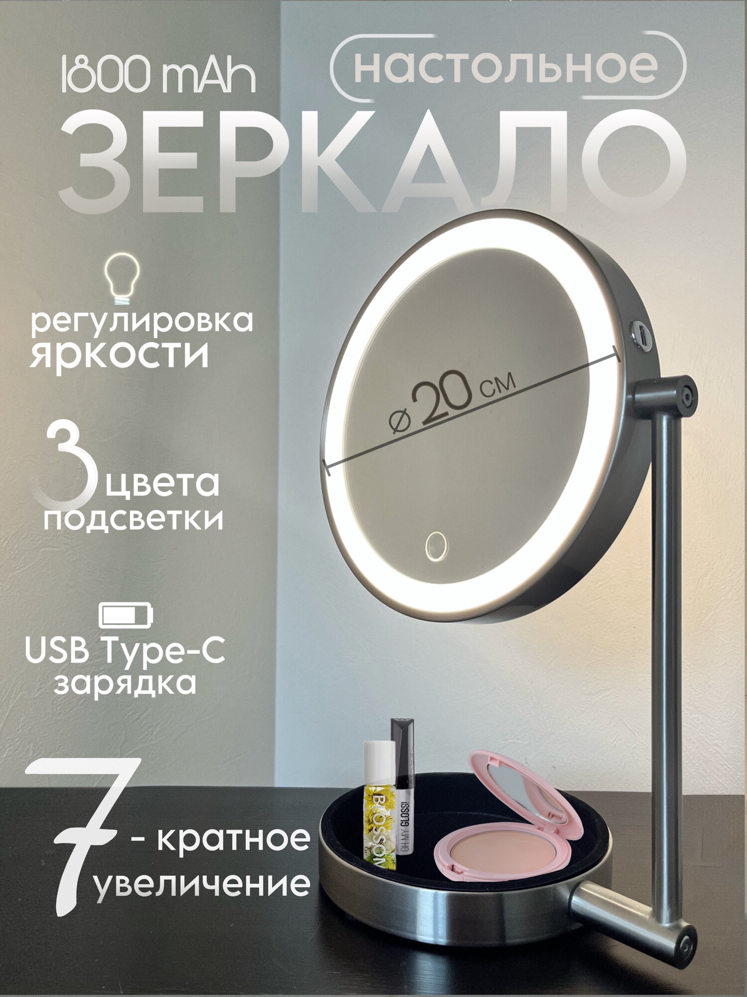 Зеркало косметическое Ø20 см., с увеличением х7 с подсветкой, двустороннее / VILAGIO / D849SE-MKC/nasten.black